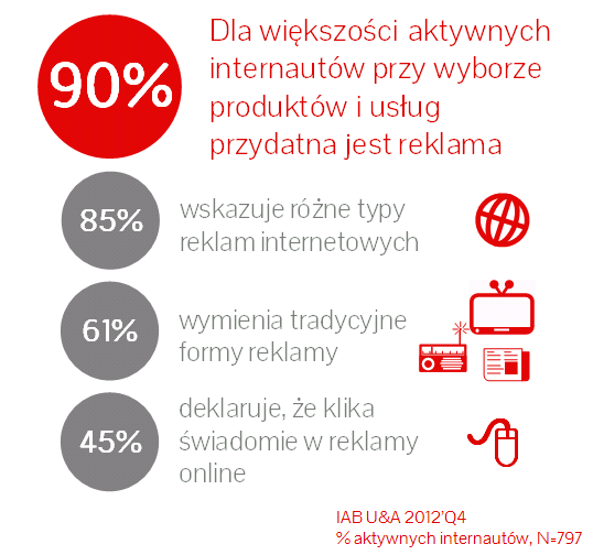 Związek Pracodawców Branży Internetowej IAB Polska w grudniu 2012 zrealizował badanie wśród aktywnych internautów, skupiając się na e-handlu z perspektywy szerokiego portfolio kanałów komunikacji cyfrowej. Z badania wynika między innymi, że 97% ankietowanych użytkowników sieci dokonało kiedykolwiek zakupu przez internet, zaś 95% rozważa e-zakupy w przyszłości, a kluczową rolę w procesie zakupowym odgrywa komunikacja cyfrowa. Do najważniejszych źródeł informacji należy reklama (tzw. „media paid”).