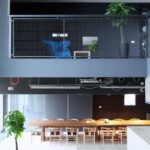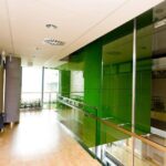Przestrzeń na piętrach trudno więc nazwać typowym „open space”. To raczej „meeting space”, który dopasowuje się do naszych potrzeb. System przesuwnych szklanych paneli i szpaler drewnianych szaf tworzy przyjemny klimat. Podzielone w ten sposób piętro zapewnia też pewien poziom prywatności. Gdy ścianki są ustawione można rozwinąć specjalną roletę i ochronić swój pokój przed wzrokiem innych osób. Rolety są też zamontowane w oknach, więc nie straszne nam słońce świecące w ekran monitora.