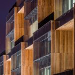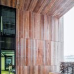 W całym budynku funkcjonuje klimatyzacja, ale można też otworzyć okna. Dodatkowo drzwi balkonowe zapewnią odpowiedni dopływ świeżego powietrza. Jeśli ktoś potrzebuje większej dawki tlenu – z pokoi zlokalizowanych od strony ul. Babimojskiej może wyjść na tarasy, a właściwie obszerne loggie obudowane drewnem (pięknie starzejącym się cedrem kanadyjskim). Tworzą one ciekawą, modułową fasadę, przypominającą właśnie pixele.