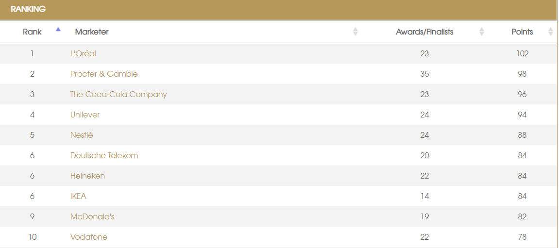 W tej kategorii pierwsze miejsce zajęła marka L’Oreal. Drugie – firma Procter & Gamble, zaś tuż za nią znalazła się The Coca-Cola Company.
