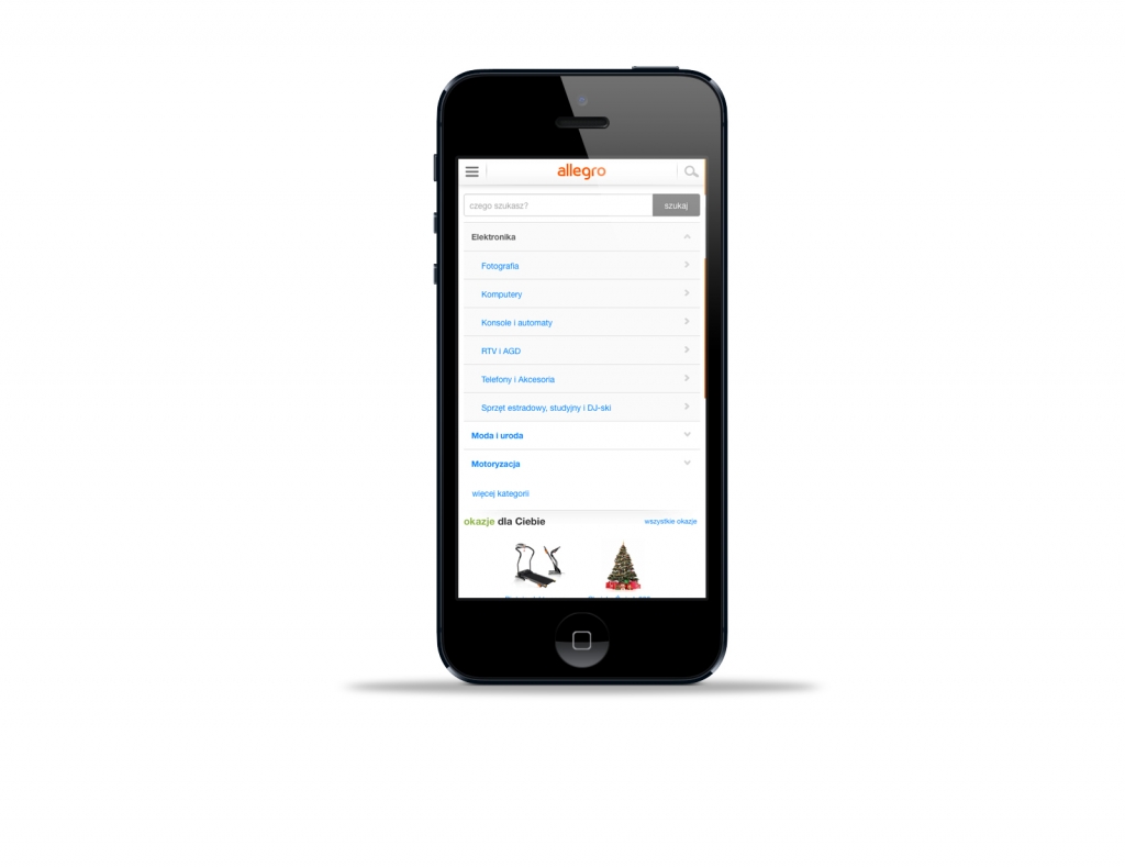 • answear.com (tylko Apple iPad), perfumeria.pl (brak), komputronik.pl (brak), merlin.pl (brak), zalando.pl (osobna strona m.zalando.pl), tchibo.pl (osobna strona www.tchibo.pl/m), bonprix.pl (osobna strona m.bonprix.pl), euro.com.pl (osobna strona m.euro.com.pl), doz.pl (aplikacja mobilna), allegro.pl (osobna strona m.allegro.pl i aplikacja mobilna)