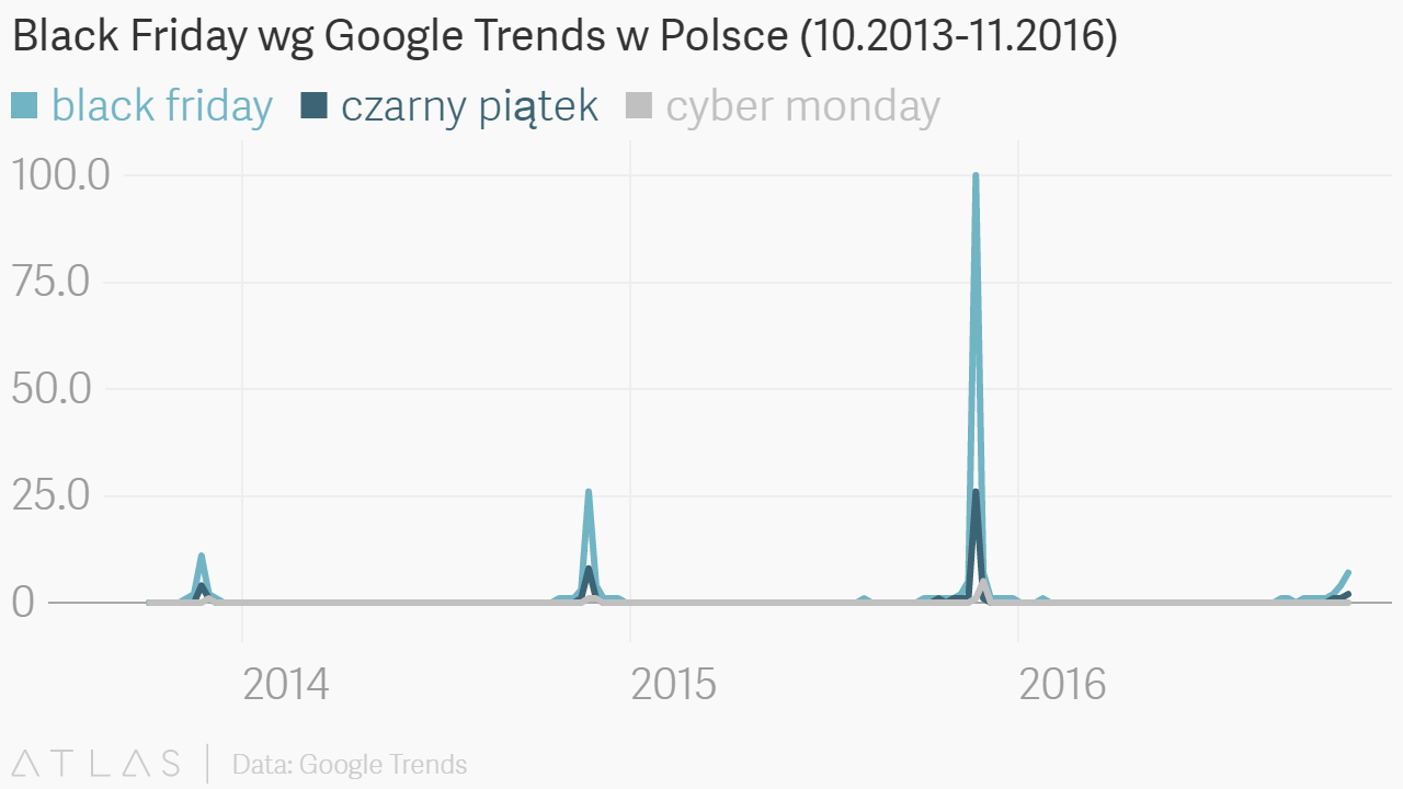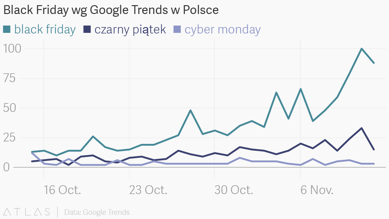 Cyber Week, którym ogólnie nazywamy okres od Czarnego Piątku do Cyber Poniedziałku, co roku bije rekordy w obrotach sklepów internetowych. W zeszłym roku podczas weekendu wyprzedażowego w USA kwota wydana tylko w e-commerce sięgnęła ponad 2,45 mld dolarów. W porównaniu do 2014 roku kwota ta była wyższa aż o 14 proc. (źródło: badanie Adobe). – Nikt jeszcze nie przeprowadził badań na temat wydanej kwoty w Polsce jako, że jest to w naszym kraju zjawisko dosyć nowe, ale szybko nabierające rozpędu. Dla porównania w Hiszpanii, tylko podczas Cyber Monday wydano blisko 2 mln euro w sklepach internetowych. Kwota ta stanowiła 6,4% rocznego obrotu hiszpańskiego e-commerce. – mówi Michał Sołtys, Regional Director Central Eastern Europe z Grupy Kwanko. W Polsce zainteresowanie tymi wyprzedażami z roku na rok rośnie. Według danych z Google Trends już rok temu liczba zapytań związanych z Cyber Week wzrosła prawie 10-krotnie w porównaniu z wynikami z 2013 roku.