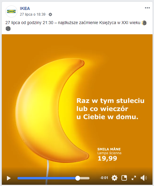 Do zaćmienia Księżyca na Facebooku nawiązały m.in. Jet Line: „Takie rzeczy tylko out of home. Nie przegap!”: