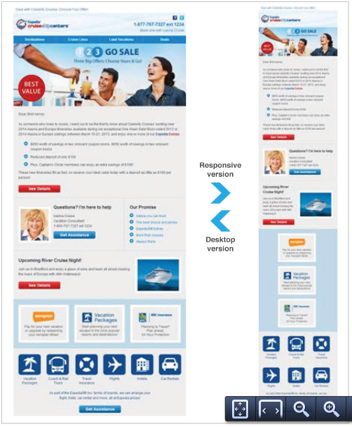 Ze względu na fakt, iż responsywne wiadomości e-mail wyświetlają się dobrze na wszystkich urządzeniach, odbiorcy mogą bez problemu otwierać je na laptopie czy komputerze stacjonarnym, jeśli jest im w ten sposób wygodniej dokonać zakupu.