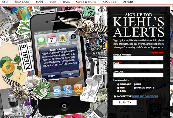 Kiehl, amerykański detalista kosmetyczny, właściciel 250 sklepów na całym świecie, jest jedną z firm, która zdecydowała się na przeprowadzenie półrocznej pilotażowej kampanii mobile marketingowej za pomocą Short Code. Klienci marki mogli zapisać się do akcji online lub przez podany numer Short Code. Oprogramowanie wykorzystywało geolokalizację, raz w miesiącu wysyłało informację o 3 najbliższych punktach Kiehls, w których można było dokonać zakupów po cenach zniżkowych.