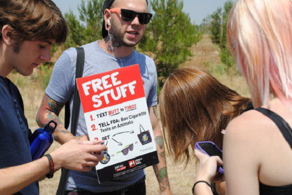 Banery, koszulki i wolontariusze podczas akcji outdoorowej zachęcali ludzi do wzięcia udziału w kampanii Short Code. Wśród uczestników rozlosowano okulary przeciwsłoneczne i torby podróżne z logo organizacji. Firma, za pomocą komunikacji SMS, zachęcała subskrybentów do wywarcia nacisku na FDA (Amerykańska Agencja Żywności i Leków), by zaprzestali testów wyrobów tytoniowych na zwierzętach. Akcja zachęciła 25 tysięcy osób do wzięcia udziału w proteście.