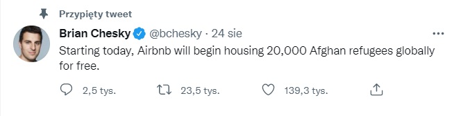 O akcji poinformował na Twitterze dyrektor generalny Airbnb Brian Chesky.