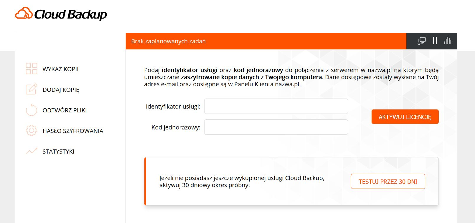 Po aktywacji wersji testowej do dyspozycji użytkowników pozostają wszystkie funkcjonalności aplikacji Cloud Backup, włącznie z 1 TB miejsca na dysku w chmurze nazwa.pl. Można wykonywać i odtwarzać pliki z kopii zapasowej przez 30 dni, testować szybkość przesyłania danych oraz przekonać się, że nawet posiadając minimalne doświadczenie w obsłudze komputera, bez trudu można sobie poradzić z wykonaniem kopii zapasowych.