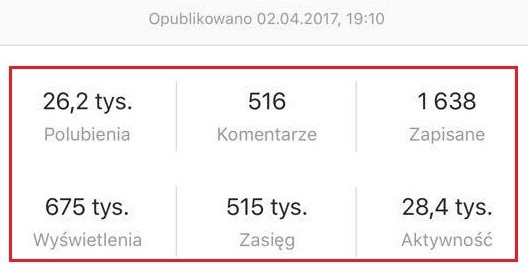 Statystyki posta “Szafa słodyczy” na Instagramie i Facebooku
