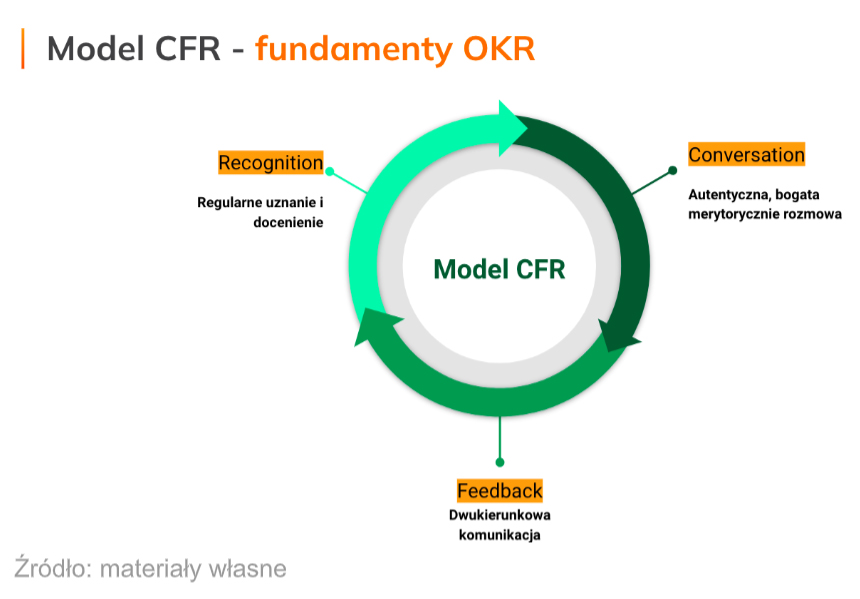 Dla Doerra, bez kultury opartej o model CFR (Conversation, Feedback, Recognition) firmy nie powinny wdrażać OKR-ów. Nasze doświadczenie potwierdza tezę Doerra – bez zdrowej kultury, opartej o autentyczną rozmowę, dwukierunkowy feedback oraz świadome wyrażanie uznania i docenienia , OKR-y mogą stać się opresyjnym narzędziem dla zespołów, nieskutecznym dla biznesu.