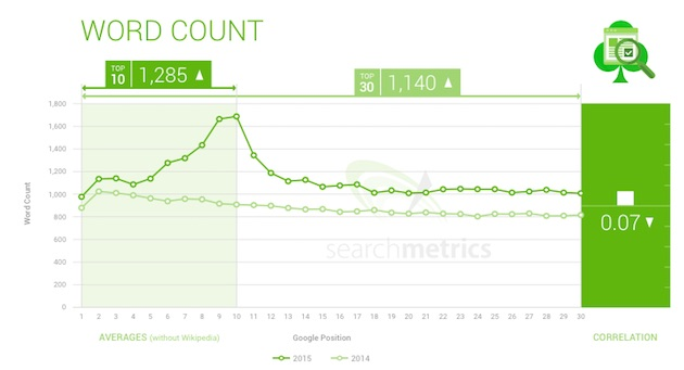 Treść jest kluczem do wysokiej pozycji w Google. W ujęciu ilościowym widać to bardzo wyraźnie – od zeszłego roku średnia liczba słów na stronach obecnych w top 10 wzrosła o około 20 proc., średnio z 975 do 1285.