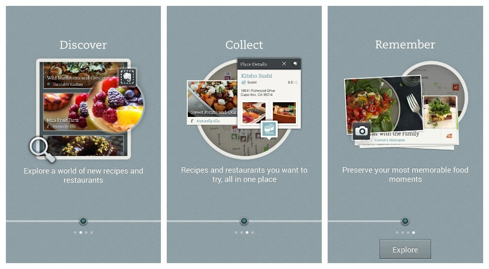 Evernote Food używa sekwencji przyjaznych dla oka stron wstępnych, na których wyjaśnia wartość, jaką ich produkt daje użytkownikowi. Dopiero po ich obejrzeniu można zacząć korzystać z aplikacji. Dzięki temu użytkownik wie, czego może się spodziewać po aplikacji i tak to powinno wyglądać.