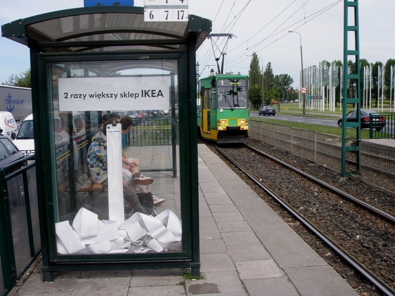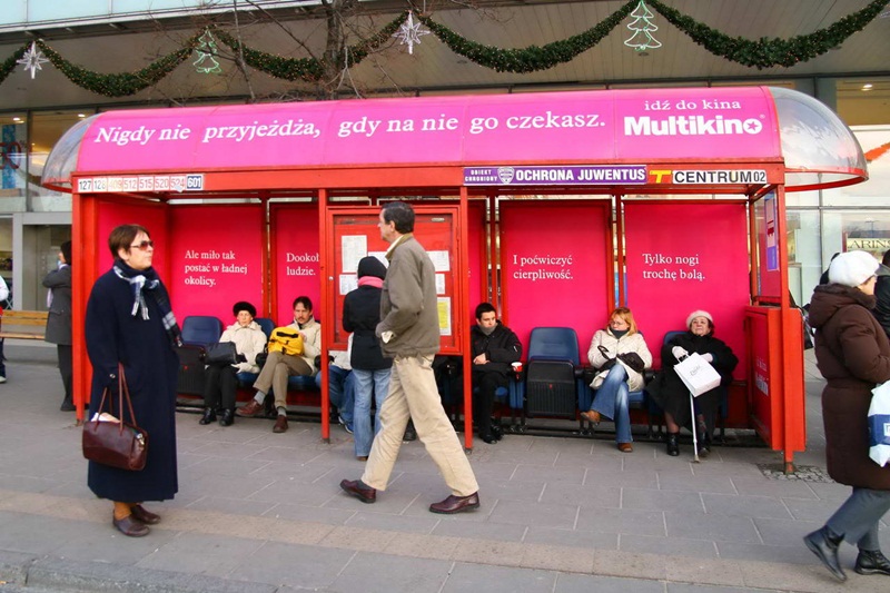 Oto przykłady niestandardowych reklam na przystankach komunikacji miejskiej:
