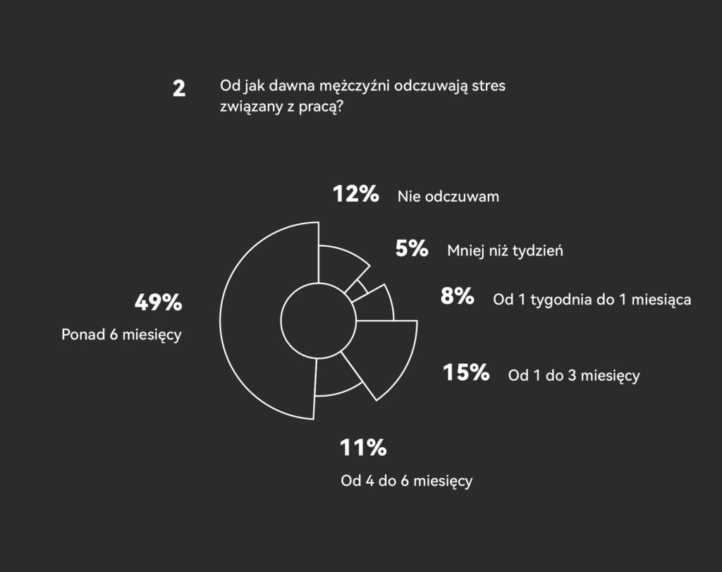 To jednak nie wszystko: aż połowa badanych Polaków (50%) potwierdza, że stres zawodowy odczuwa od ponad pół roku. To znak, że mowa o przewlekłym charakterze tego zjawiska, które może skutkować wypaleniem zawodowym oraz innymi zaburzeniami.