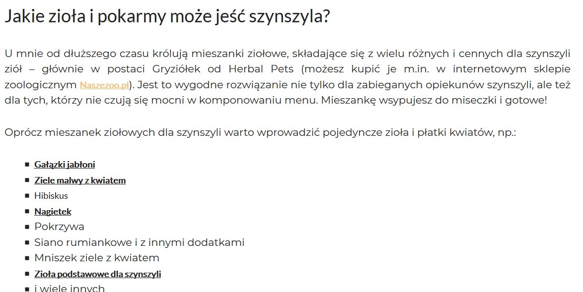 Na blogu uszynszyla.pl ukazał się artykuł „Dieta szynszyli – co mogą jeść?”, opisujący dietę i sposoby odpowiedniego karmienia szynszyli. Zaprezentowanie oferty sklepu określonym odbiorcom należącym do danego segmentu, pozwoliło na wypromowanie produktów oraz sklepu w sposób naturalny, wzbudzający zaufanie.