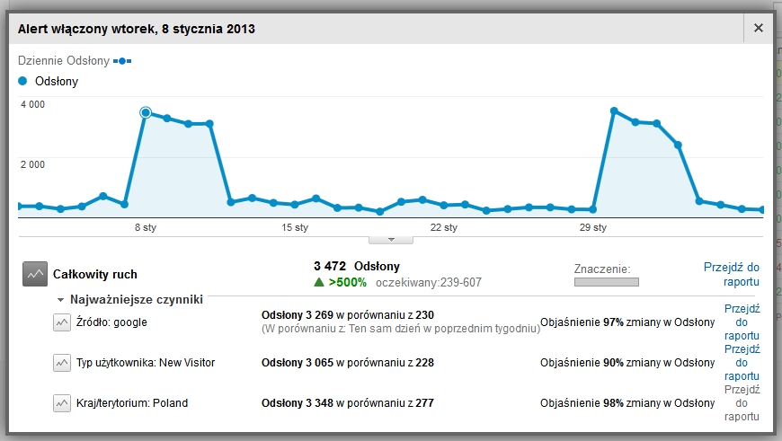 Jesteś bardzo zabiegany i nie możesz na bieżąco obserwować raportów? Inżynierowie z Google postanowili podać Ci pomocną dłoń w postaci tzw. zdarzeń inteligentnych (alertów). Dzięki nim nie przeoczysz żadnej istotnej zmiany w Twoich statystykach. Jak to działa?