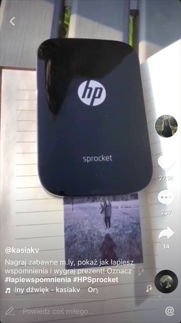 Młodzi z pokolenia Z są niezwykle odporni na reklamę, dlatego najlepszym sposobem dotarcia do nich są influencerzy. Wśród użytkowników już teraz można wytypować tych najbardziej wpływowych. Niektóre marki już podejmują pierwsze współprace z muserami, jedną z nich jest firma HP. Jako jedna z pierwszych, przy okazji kampanii digitalowej dla produktu HP Sprocket, podjęła współpracę z trzema topowymi musermi. Biorąc pod uwagę mnogość informacji, przed młodymi twórcami postawiono dosyć trudne zadanie. W 15-sekundowym filmie musieli przedstawić wszystkie zalety produktu oraz jego funkcjonalność. Dzięki możliwościom montażu oraz kreatywności muserzy zdołali w atrakcyjny dla swoich obserwujących sposób przedstawić produkt. Kampania spotkała się z bardzo pozytywnym odbiorem obserwujących profile twórców.