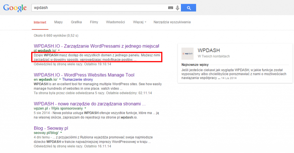- był zgodny z tym, co zawiera serwis – jeśli treść będzie inna, wyszukiwarka nie wyświetli przygotowanego description, lecz wybierze fragment treści dostępny na stronie,