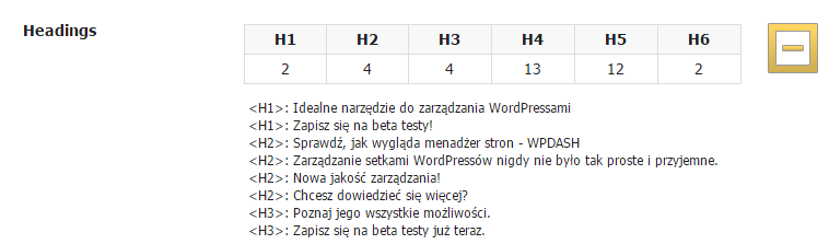 - nagłówek powinien zawierać słowa kluczowe (szczególnie nagłówek H1),