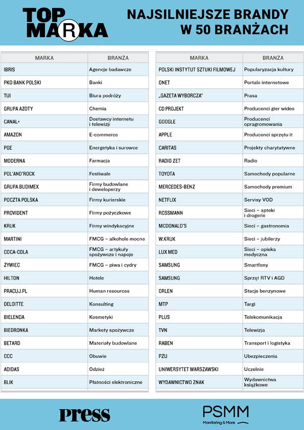 Raport branżowy Top Marka – w wersji podstawowej i poszerzonej – dostępny jest na stronie: www.topmarka.eu.