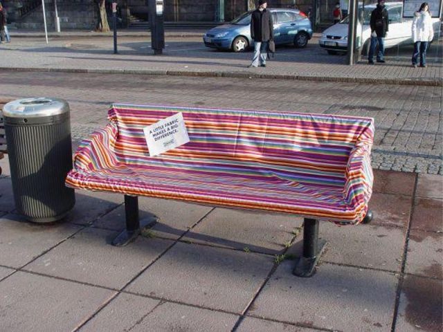 Ławki jako element urbanistyczny są równie wdzięcznym tematem do niestandardowych kreacji reklamowych jak przystanki autobusowe, drzwi wind czy latarnie uliczne. Pamiętam polski case „Ciepłe przystanki Vattenfall” z ocieplaną ławką w wiacie przystankowej, ostatnią znaną mi polską realizacją jest rosnąca kanapa IKEA Targówek. Dyskutowaliśmy o tym w branżowym gronie i – wśród wielu już przykładów ze świata – ten nie jest już niczym spektakularnym. Osobiście najbardziej lubię nowozelandzki projekt ławki, która na nagich udach (kobiet) odciskała niczym stempel tekst przekazu o wyprzedaży szortów w sklepach Superette.