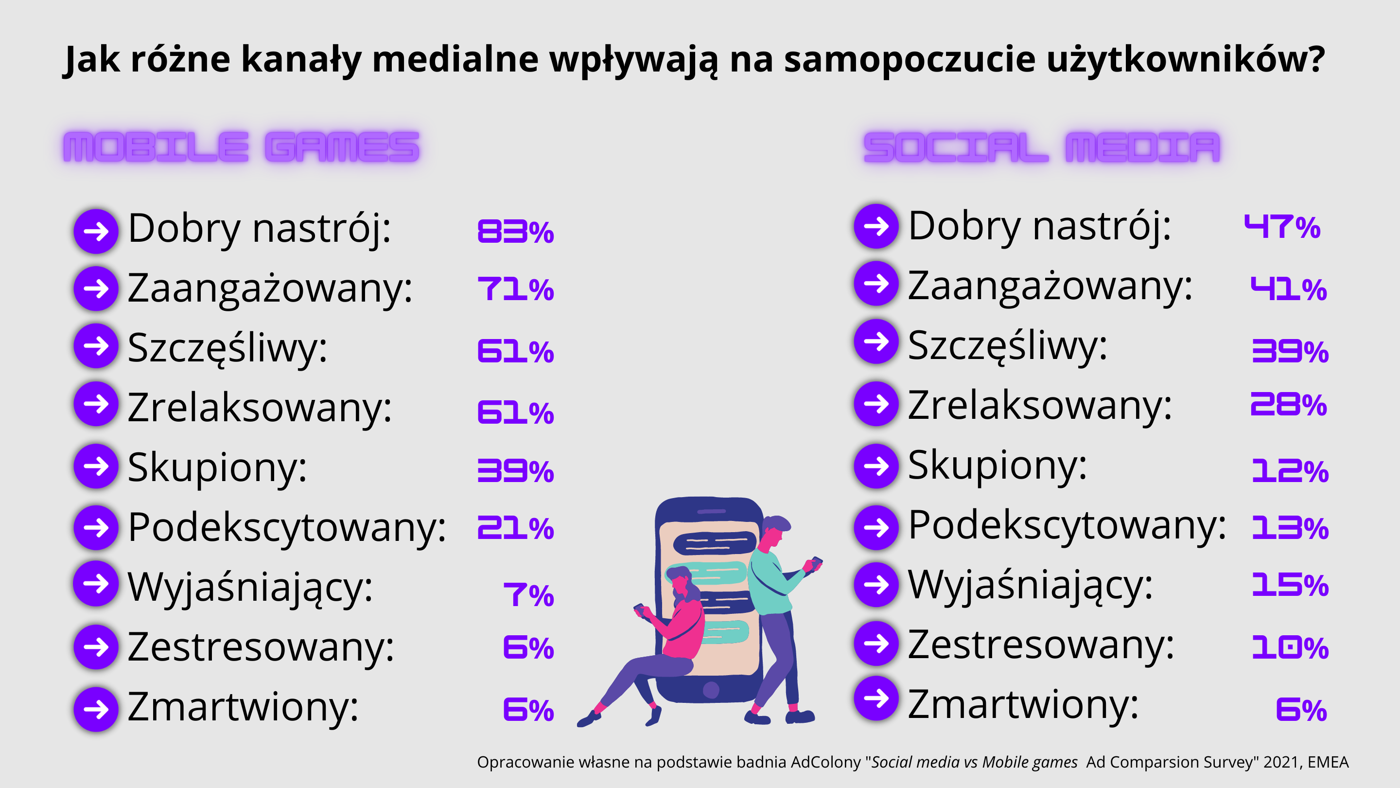 Raport AdColony „Social Media vs. Mobile Games” dla Mobiem Polska wykazuje, że aż 88 proc. ankietowanych gra w gry mobilne. Największy odsetek z nich (44 proc.) to osoby do 34 roku życia. Millenialsi i Generacja Z coraz częściej traktują gry, jako nowe miejsce spotkań i przedłużenie rzeczywistości.