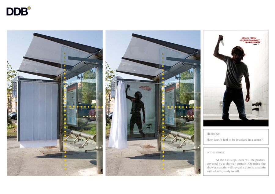 Na początek interaktywny przystanek przygotowany dla marki Cadbury – czekający na autobus mogli wziąć udział w interaktywnej grze, w której ich zadaniem było wyłapanie w ciągu 20 sekund jak najwięcej wyskakujących jajek Creme Eggs poprzez uderzenie ich na powierzchni citylighta. (więcej reklam dla miłośników czekolady)