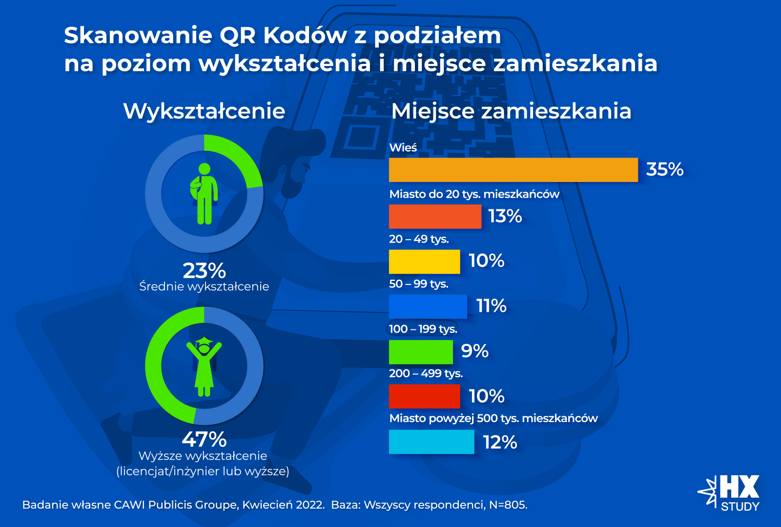 Kody QR są uniwersalne i proste w obsłudze dla wszystkich grup wiekowych. Co więcej, 47 proc. skanujących ma wyższe wykształcenie, 39 proc. określa się jako zamożnych lub że wystarcza im na wszystkie wydatki, a prawie połowa (48 proc.) mieszka w 3-4 osobowych gospodarstwach domowych. – Te dane wskazują na to, że kody QR to już narzędzie dnia codziennego, z którego korzystają osoby o stabilnej sytuacji życiowej. Równie często skanują osoby zamieszkałe w miastach, jak i na obszarach mniejszych miast i wsi – dodaje Marta Górecka.