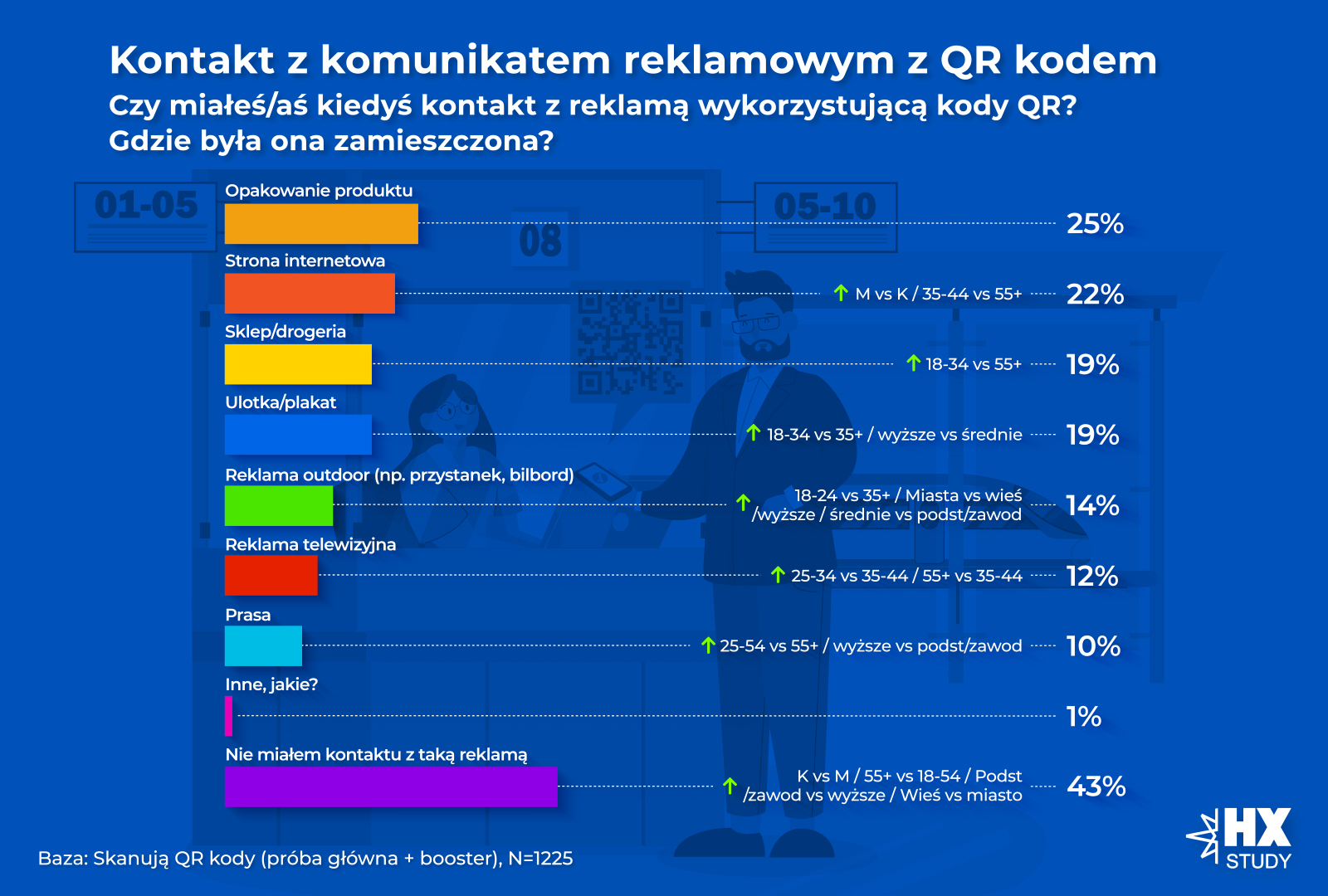 Wśród osób, które zeskanowały QR z reklamy 1/4 wskazała opakowanie produktu jako miejsce, gdzie QR kod został umieszczony.
