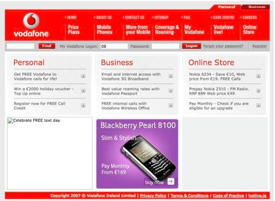 Aby zobaczyć te zmiany, spójrzmy na stronę Vodafone – jednego z największych operatorów sieci komórkowych na świecie. W 2007 roku strona e-commerce firmy była bardzo ograniczona:
