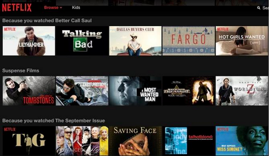 Strona Netflix stanowi znakomity przykład trendu personalizacji w akcji. Firma oferuje użytkownikom możliwość natychmiastowego wyświetlania filmów oraz seriali na zasadzie abonamentu lub systemu pay-per-view. Ich spersonalizowana strona sprawia, że użytkownicy otrzymują rekomendacje oparte o to, co wcześniej oglądali. Stymuluje to lojalność i częstsze korzystanie z oferty serwisu. Pomyśleć, że w 2007 roku serwis dopiero raczkował i nikt nawet nie słyszał o personalizacji stron…