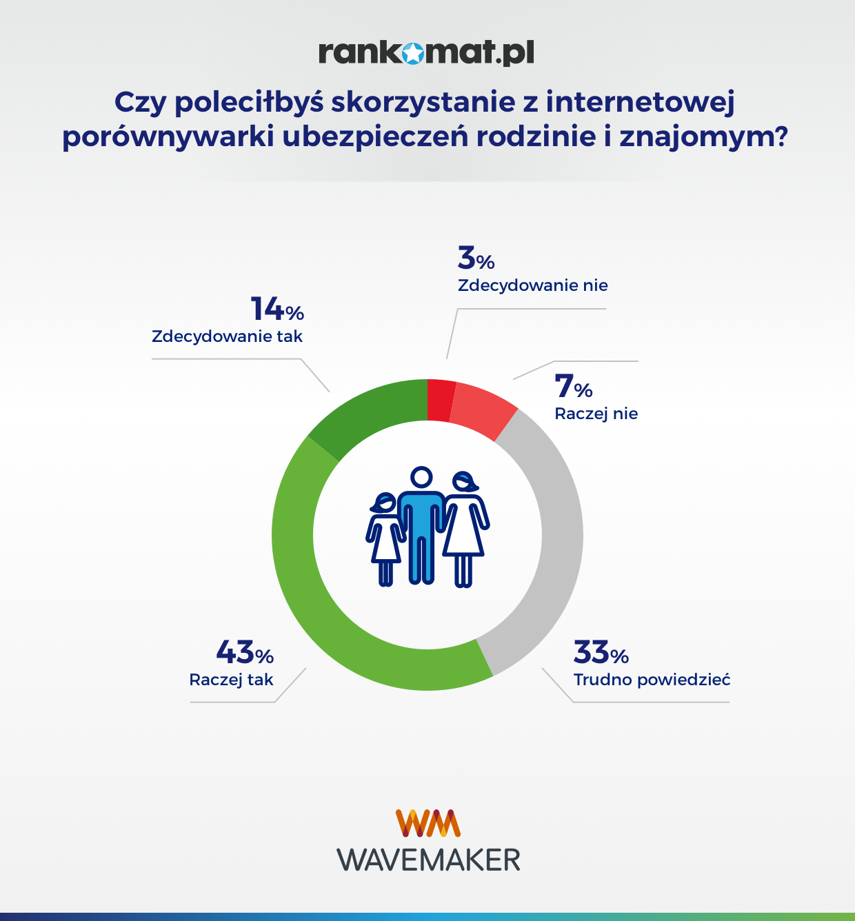 Podobnie wygląda sytuacja z polecaniem takich usług. 57% ankietowanych rekomendowałoby takie usługi przyjaciołom lub rodzinie, zaś jedna trzecia dopuszcza taką możliwość. Tylko co dziesiąty respondent nie poleciłby internetowych porównywarek ubezpieczeń.