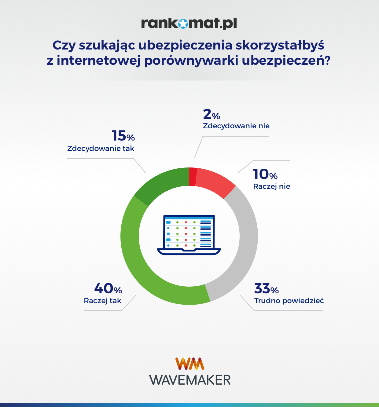Rankomat wyróżnia się na tle innych porównywarek usług finansowych. Majowe badanie Wavemaker pokazało, że np. Cuk.pl kojarzy niemal dwukrotnie mniej, bo zaledwie 40 proc. internautów. Kolejne miejsca zajmują UbezpieczeniaOnline.pl z wynikiem 29 proc., i Comperia, którą zna co piąty respondent.