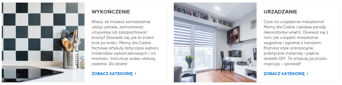 Szerzej case naszej współpracy z Castoramą opiszę za chwilę, tutaj nawiążę tylko do jednego wycinka – tworzenia artykułów na stronę. Przez dłuższy czas w sekcji contentowej publikowaliśmy 2 rodzaje tekstów: porady inspiracyjne i eksperckie long-formy. Po kilku miesiącach zbadaliśmy zaangażowanie oraz procent wejść organicznych generowanych przez oba rodzaje artykułów.