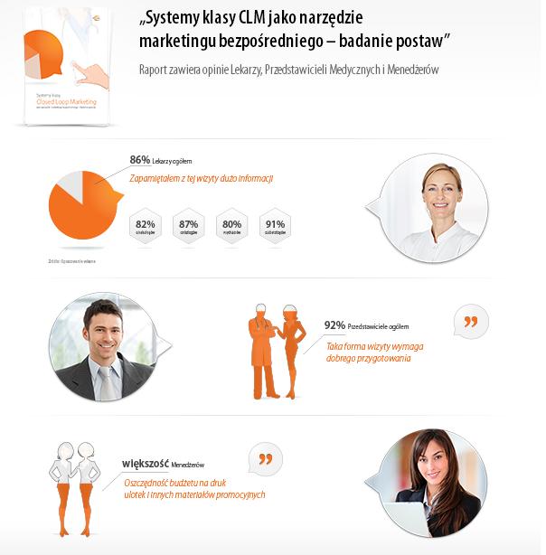 93% przedstawicieli stwierdziło, że forma prezentacji, jaką wymusza stosowanie rozwiązań CLM, wymaga znacznie lepszego przygotowania do wizyty niż forma klasyczna – ulotka. Dzięki temu jakość wizyty znacząco wzrasta, a przedstawiciel jest traktowany przez lekarza jako partner. Aż 86% ankietowanych lekarzy potwierdziło, iż ta forma wizyty pozwala znacznie lepiej zapamiętać przekazywane przez przedstawiciela informacje.