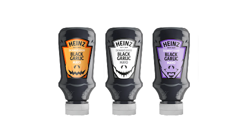 Szata graficzna opakowań czarnego majonezu nawiązuje do wizerunku szkieletu, dyni albo wampira, a wszystko z zachowaniem najważniejszych cech gwarantujących rozpoznawalność produktów Heinz na sklepowej półce.