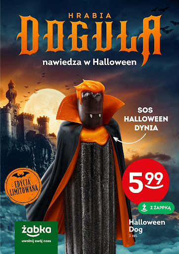 Na plakatach promujących nowość w Żabce widzimy hot doga przypominającego postać wampira, zatem Hrabia Dogula ma za zadanie straszyć już od wejścia (do sklepu).