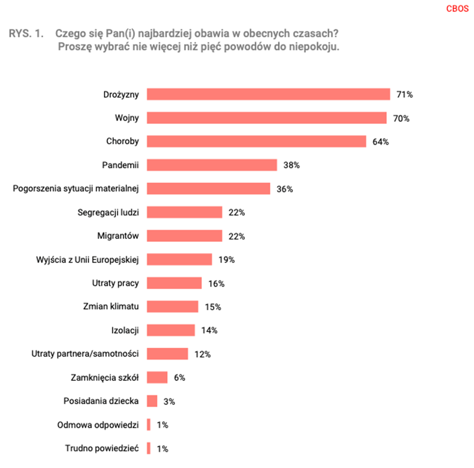 Należy mieć na uwadze, że badanie zostało wykonane, przed wybuchem pandemii koronawirusa, wojny na Ukrainie oraz zanim Polacy zaczęli się zmagać z wysoką inflacją i drożyzną. Te trzy elementy całkowicie wywróciły hierarchę obaw Polek i Polaków.