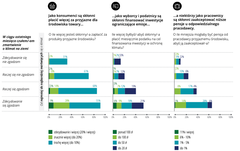W jednym ze swoich badań Deloitte zapytał Polaków o to czy obawiają się o zmiany klimatu. 81% respondentów potwierdziło, że ma takie obawy. Następnie ta grupa została zapytana o to czy byłaby w stanie płacić więcej za towary, które są przyjazne dla środowiska.