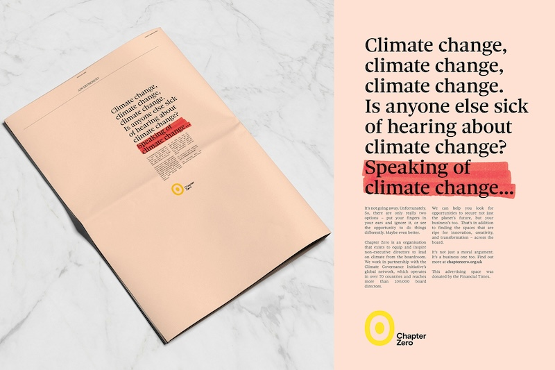 Tylko zmiany długoterminowe wdrażane przez największe firmy umożliwią realny wpływ na zmiany klimatyczne – przekonuje najnowsza kampania organizacji Chapter Zero. Jej efekty zobaczą czytelnicy Financial Times.