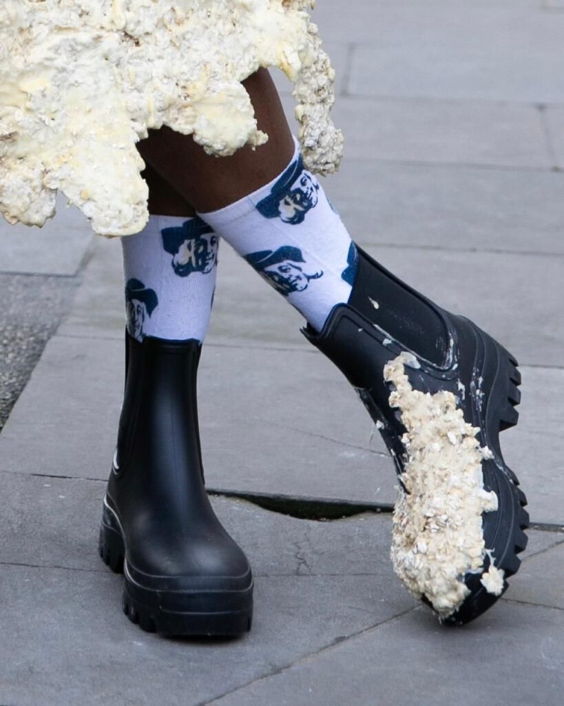 Sukienkę wykonaną z owsianki można było zobaczyć na ulicach Londynu, po których podczas tamtejszego Tygodnia Mody z dumą przechadzała się influencerka. Co więcej, aby dopełnić stylizację, Lili Rose miała dodatkowo w torebce… prawdziwą owsiankę.