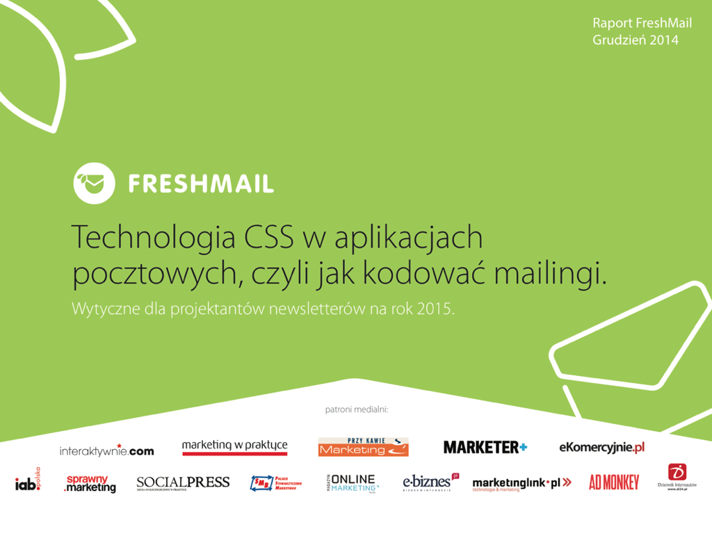 Wydawać by się mogło, że dobrze skodowany newsletter wyświetli się tak samo we wszystkich programach pocztowych – nic bardziej mylnego. Raport FreshMaila pokazuje, że każdy program i aplikacja pocztowa obsługuje inaczej właściwości CSS. Najwięcej błędów przy wyświetlaniu wiadomości mogą powodować pliki video oraz gify. Z drugiej strony są one często najbardziej atrakcyjnym elementem mailingu. Raport CSS szczegółowo przedstawia jak poszczególne elementy są wyświetlane przy otwarciu newslettera w różnych aplikacjach pocztowych i przekazuje wiele praktycznych porad jak uniknąć błędów przy kodowaniu.
