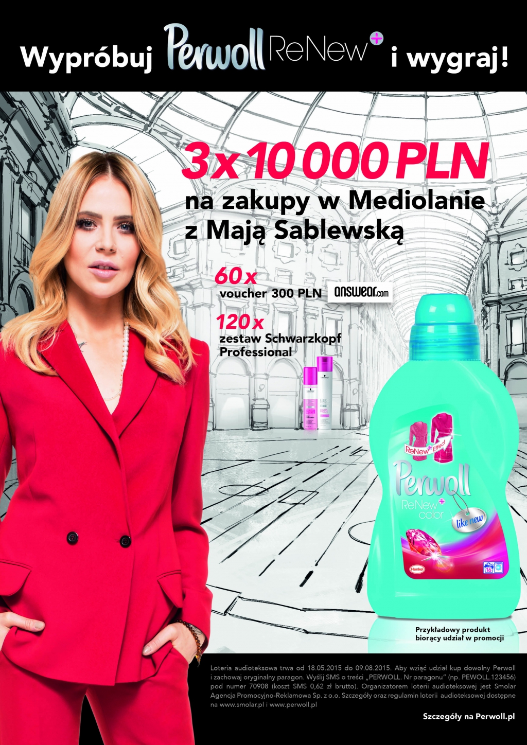 Dzięki Perwoll z formułą ReNew+ konsumenci mogą nie tylko przez długi czas cieszyć się intensywnymi kolorami ubrań, ale też przywrócić im utracony blask. Teraz, dla wszystkich lubiących zabawy modą, marka przygotowała wyjątkową loterię, w której główną nagrodą są zakupy w stolicy mody – Mediolanie z ambasadorką marki i cenionym doradcą wizerunkowym – Mają Sablewską.