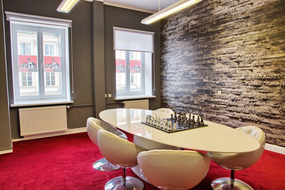 Wszystkie biura Mediakraft są urządzone z dużą dozą kreatywności i estetyki od dnia pierwszego. Interesujące wnętrze to nie tylko komfort pracowników, ale przede wszystkim wymóg ze względu na charakter naszej pracy. Zajmujemy się produkcją filmową, więc całe biuro jest również jednym, wielkim studiem nagraniowym, pełnym rekwizytów, teł i setów.