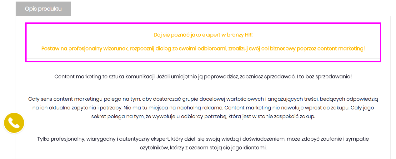 Karta produktu – usługi content marketingu dla HR w sklepie www.hrtools.pl