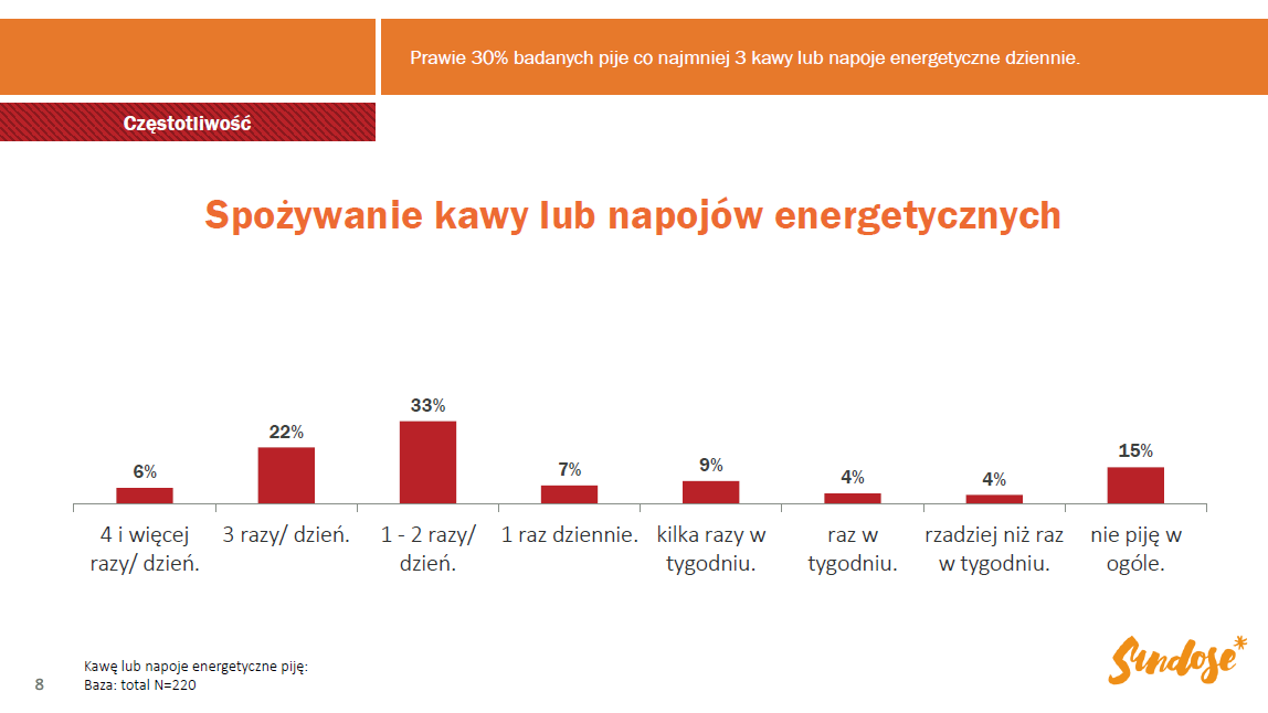 Prawie 30% ankietowanych przyznaje się do picia 3 kaw lub napojów energetycznych.