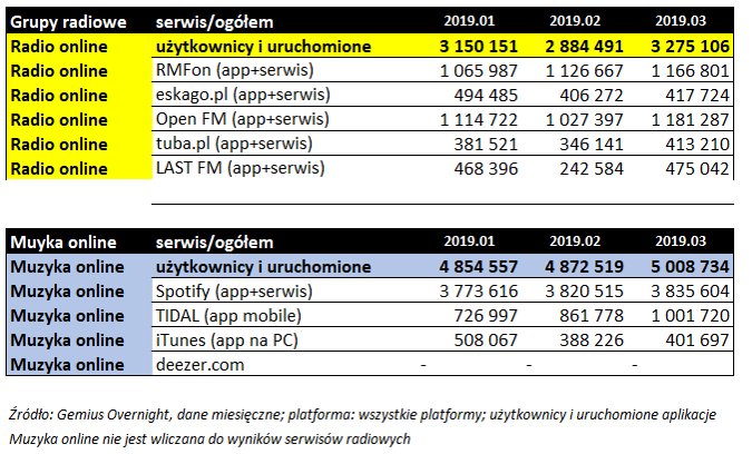 Jeżeli spojrzymy w dane Gemius Overnight, okazuje się, że średnio miesięcznie strony z radiem online odwiedza w Polsce 3 mln realnych użytkowników. Z kolei z platform służących do słuchania muzyko online (Spotify, Deezer itd.) korzysta miesięcznie ponad 5 mln użytkowników. Szansę na angażowanie tych użytkowników widzą również klienci i coraz chętniej korzystają z reklamy audio.