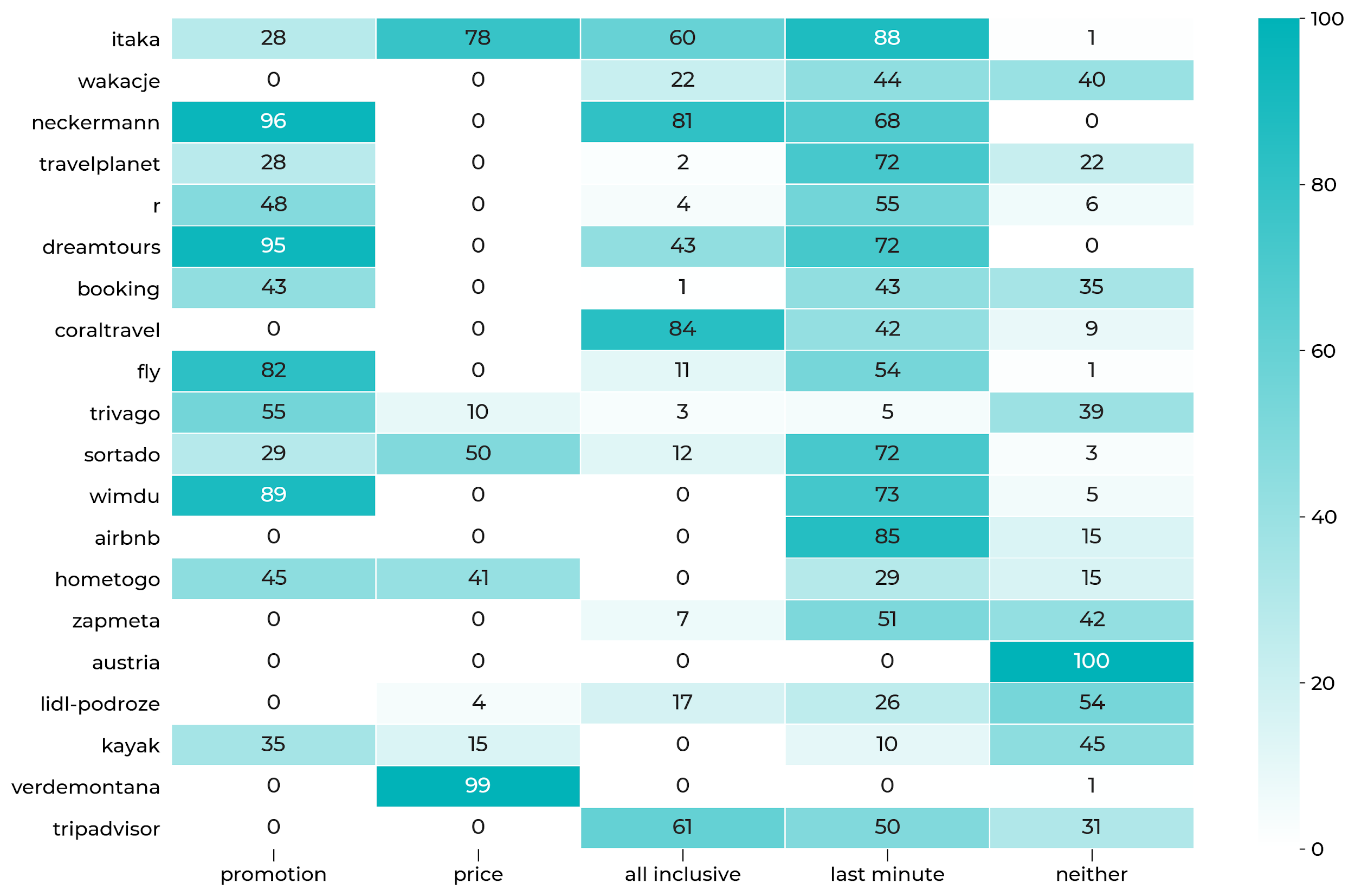 - Neckermann i Coral Travel mocno koncentrują się na komunikacji all inclusive (ponad 80% reklam).