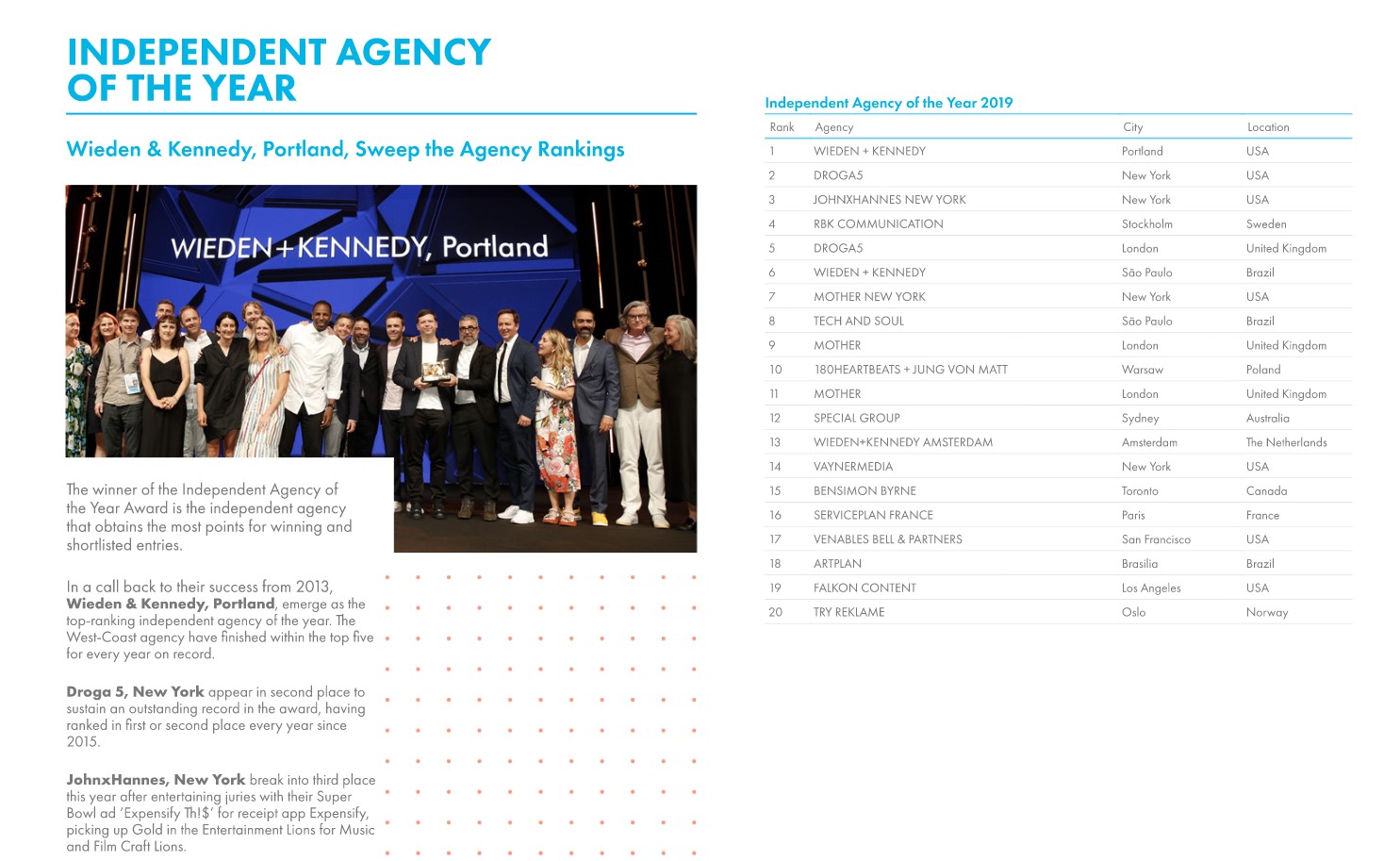 Ponadto agencja wraz z VMLY&R i Grey Group Poland przyczyniła się także do wysokiej, 16. pozycji Polski w rankingu najbardziej kreatywnych krajów świata.