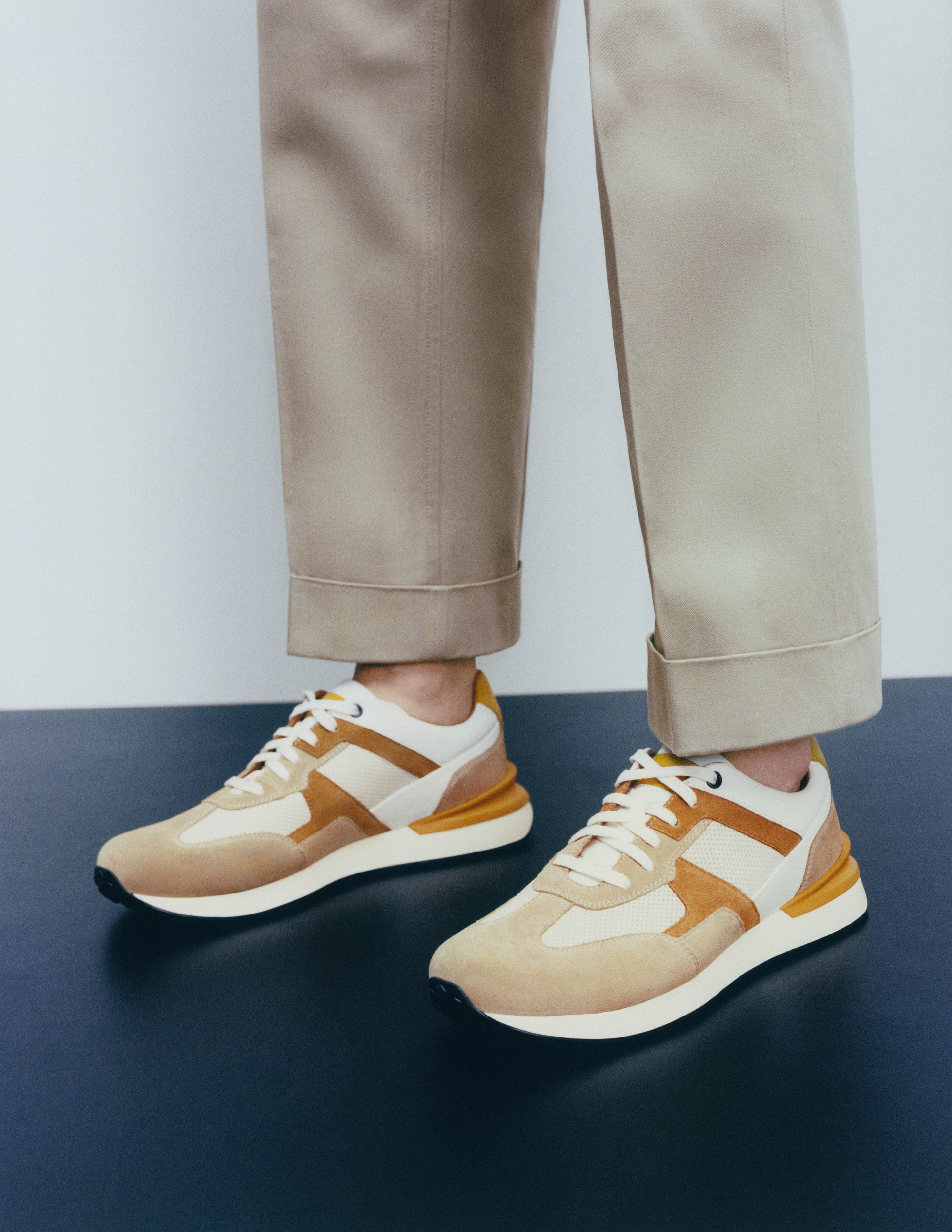 Jeszcze bardziej minimalistyczne, niemal ascetyczne, są męskie sneakersy do kostek, w miejskim klimacie oraz jasne sztyblety na masywnej podeszwie. Buty sportowe dla niego utrzymano w stylu retro – łączą panele w odcieniach karmelu, caffe latte i bieli. Oprócz tego, w kolekcji pojawiają się granatowe sneakersy, wpisujące się w marynarski styl. Jako że modele sportowe na stałe weszły do codziennej mody, sneakersy modny mężczyzna nosi do chinosów i bomberek na weekend, a z garniturem do biura. Stonowane tonacje obuwia wpisują się w sezonowe trendy – na wybiegach oglądaliśmy męskie looki w odcieniach czekoladowego brązu, toffi i piasku.